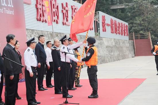 2020年12月8日,公安部国际合作局副局长杨云东向驻老挝孟莫和班相果联络点中方执勤分队授旗